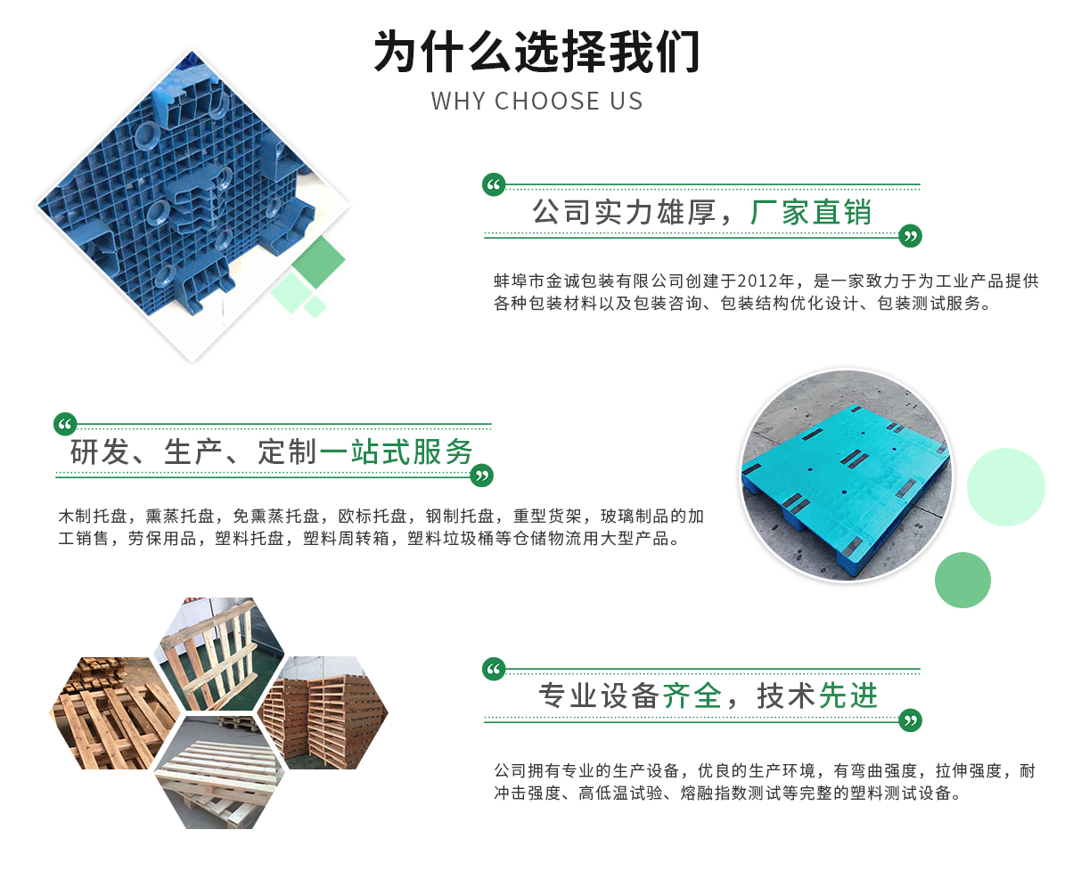 蚌埠市金誠包裝有限公司創(chuàng)建于2012年,是一家致力于為工業(yè)產(chǎn)品提供各種包裝材料以及包裝咨詢、包裝結(jié)構(gòu)優(yōu)化設(shè)計、包裝測試其中包括木制托盤,熏蒸托盤,免熏蒸托盤,歐標(biāo)托盤,鋼制托盤,重型貨架,玻璃制品的加工銷售,勞保用品...